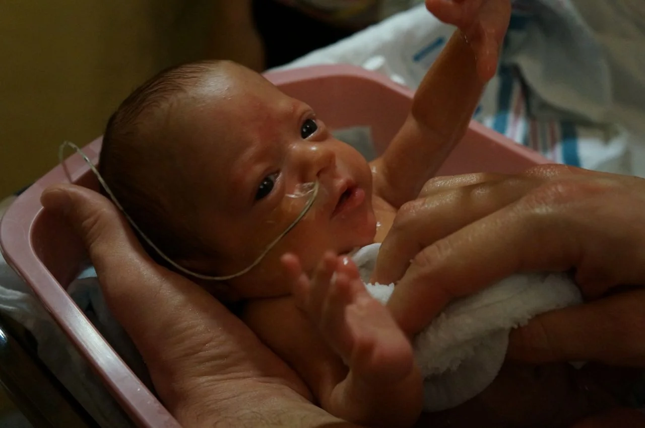 It was bath time for sweet Hattie tonight. We're grateful Hattie likes the bath because we've been told a lot of preemies have sensory overload when they get in the water.